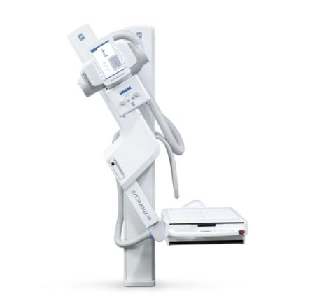 - Diseño del sistema compacto y flexible, que permite un uso extensivo, incluyendo estudios radiográficos generales, de emergencia y ortopédicos.